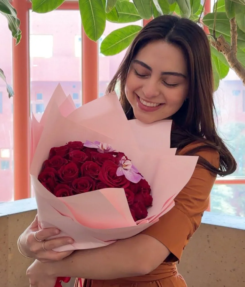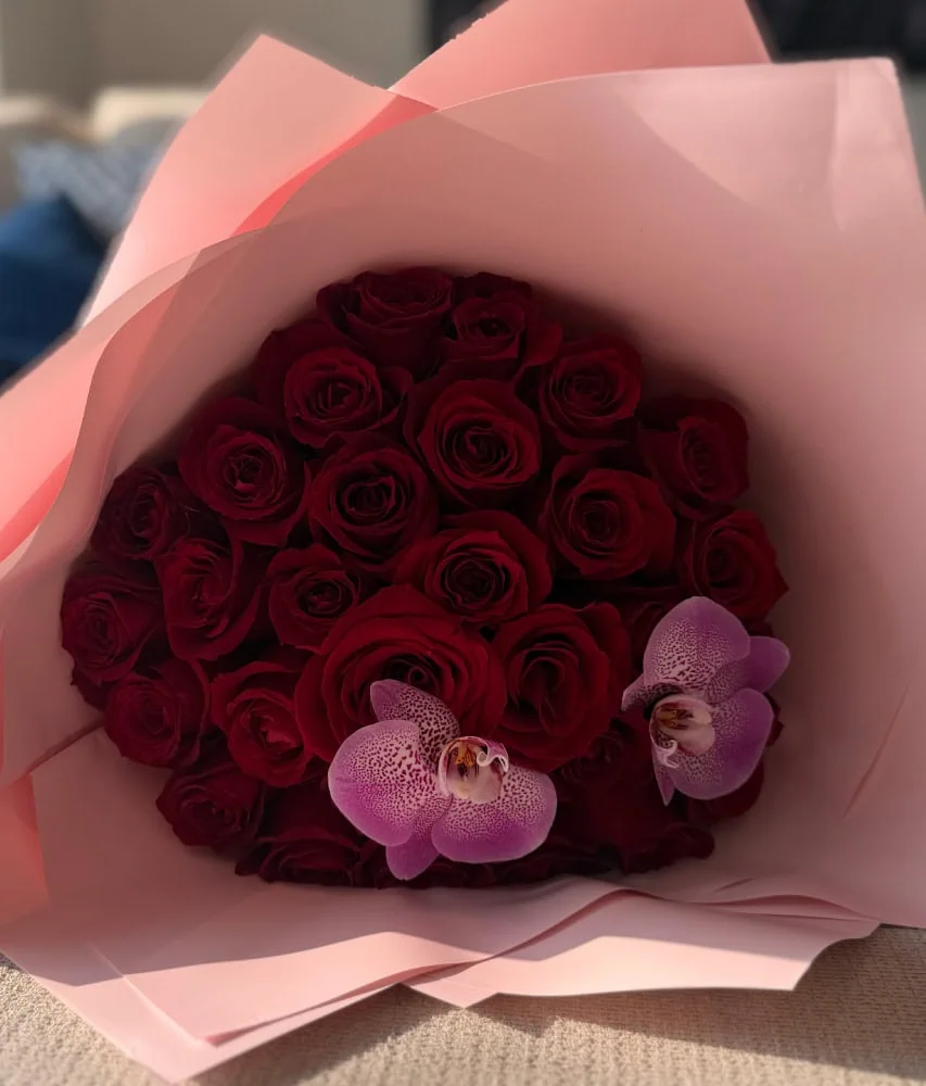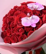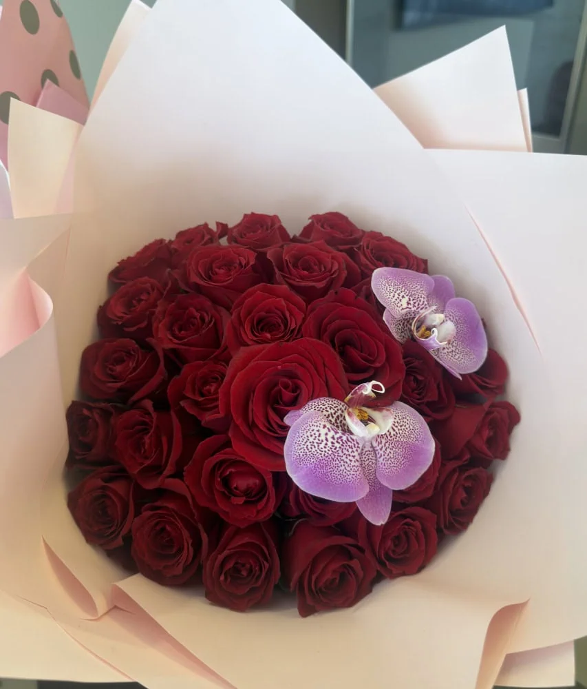 30 rosas rojas con 2 hojas de orquideas, Ideal para sorprender